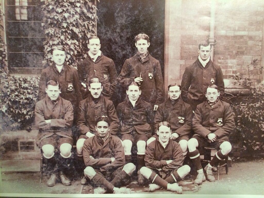 My late husband, Frederick’s, grandfather was Leslie McCarthy (1885-1970). Leslie’s father hailed from Sierra Leone and his mother from Hull. They probably met when Leslie’s father came to Britain to qualify as a lawyer. After they married they settled in Sierra Leone but, sadly, his mother died there in 1889 at the age of 32. Leslie seems then to have been brought up by his maternal family and went to school in Clapham, London. He then came in 1904 to read Law at Keble College. The photograph shows him as a member of the Keble College Football Team, bottom row, left.