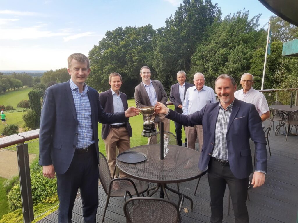 Congratulations to the team from the University of Oxford for winning the Fox-Powell Trophy in a closely contested match against the University of Cambridge on 2 July 2021. Oxford’s team included St Hugh’s College members Professor Michael McMahon, Colin Bailey and Jeremy Weeks. The annual Oxbridge golf tournament, hosted this year by Oxford, was held on neutral ground at Aspley Guise and Woburn Sands Golf Club. Celebrating its 40th anniversary the Fox Powell Trophy was first contested in 1980 and was donated and presented by W. B. Bald, in memory of his father John Bald.