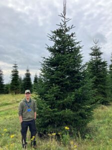 Carson is pictured at the Christmas tree farm during a visit by the Gardens team in September to choose the College’s trees.