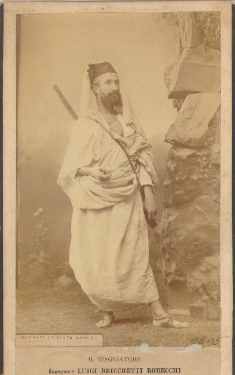 Born in Pavia, Italy, in 1855, Luigi Robecchi Bricchetti explored territories of colonial interest in Egypt, Libya and the Horn of Africa between 1885-1903. He donated most of the ethnographic, photographic, documentary and other materials he collected during his travels to his birth city. On fascist Italy’s inaugural ‘Colonial Day’ (21 April 1926), this collection became the ‘Colonial Section’ of Pavia’s city museum. Bricchetti died one month later. Since the Second World War, in a trend of colonial amnesia in Italy, Bricchetti’s name has fallen into obscurity. His collections now lie in storage facilities and require conservation and comprehensive cataloguing from a critical and decolonial perspective in order to fully resignify in our contemporary age.