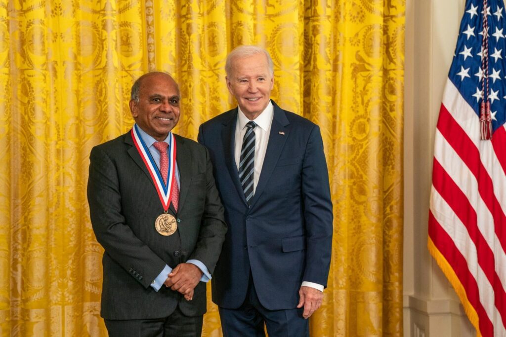Professor Suresh with President Biden during the award ceremony at the White House.