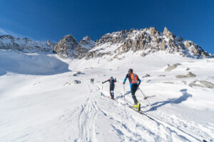 Both Horst and Monty started skiing at very young ages. Horst started skiing when he was five years old (he was brought up in a little mountain town in the Alps). Horst was a good long-distance runner when he was a student (Marathon PB 2.36.14), and used ski mountaineering to train in the winter. In his fifties, he gave up on running because of knee problems but kept up ski mountaineering. Among his many skiing accomplishments, he achieved a third place in the Transcavallo Individual Race in 2021 (Masters Category). The “Transcavallo” is an internationally well-known ski mountaineering race which attracts competitors from all over the world. Monty started skiing as a two-year-old in Les Houches, France, not far from where he was born.