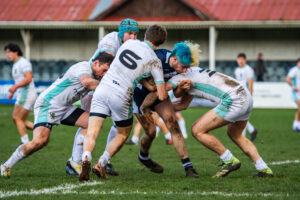 ‘Having lost to Cambridge earlier in the season nerves were high going in, especially considering OURLFC has never lost a game home at Iffley Road, where we were playing. The first half was very physical, with both sides scoring with back moves in the corner. Finishing 10-6 up at half time, we went into the second half with the plan to “earn the right” of an expansive last 20 minutes with tight running lines and quick defensive line speed. We managed to achieve this goal, with a number of defensive sets on our tryline but Cambridge not being able to break through, and the game ending 14-6 to Oxford. Patrick and I have both been involved with the club for the last three years, but it was the first time playing Varsity for the Blues side for both of us – Patrick put in an especially memorable performance after coming off with a bleeding head, getting it wrapped up and OK’d by a medic, before going back on the pitch to continue breaking the Cambridge line apart with his runs.’
